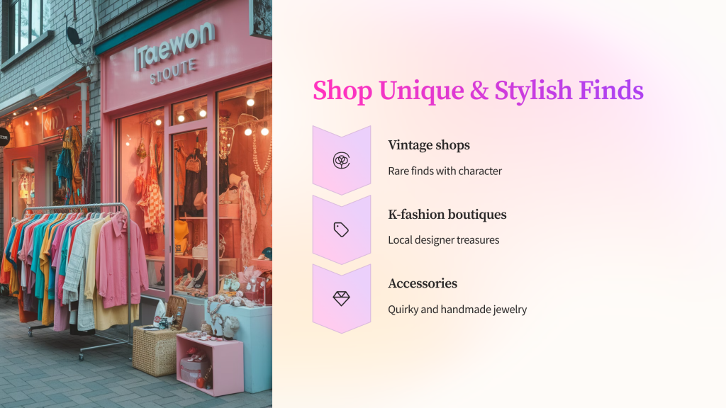 Whether you want bold streetwear or classic Korean minimalism, Itaewon has a style for every mood.